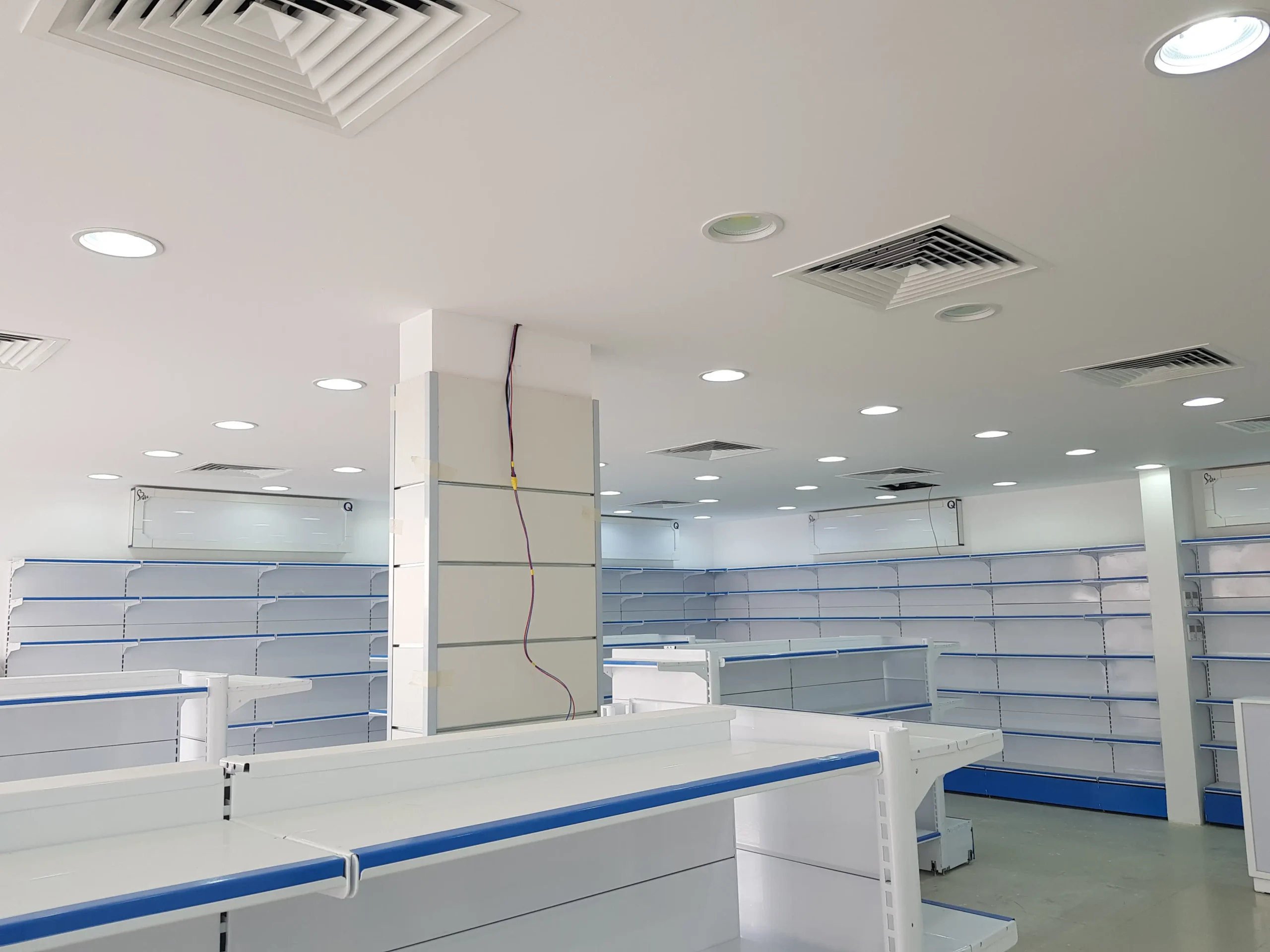 مشروع أعمال تجهيز صيدلية نبض الحياة شمل تنفيذ التشطيبات الداخلية الكاملة، وتركيب الأرفف الدوائية ووحدات العرض، وأنظمة الكهرباء والإضاءة والتكييف وفق اشتراطات القطاع الصحي.