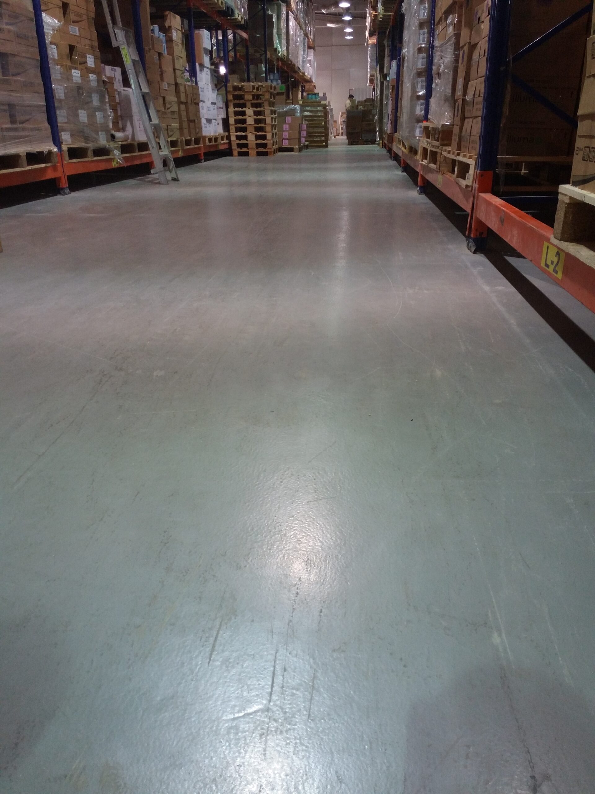 - تنفيذ الأرضيات الإيبوكسية عالية الجودة المقاومة للاستخدام الشاق داخل المستودع.