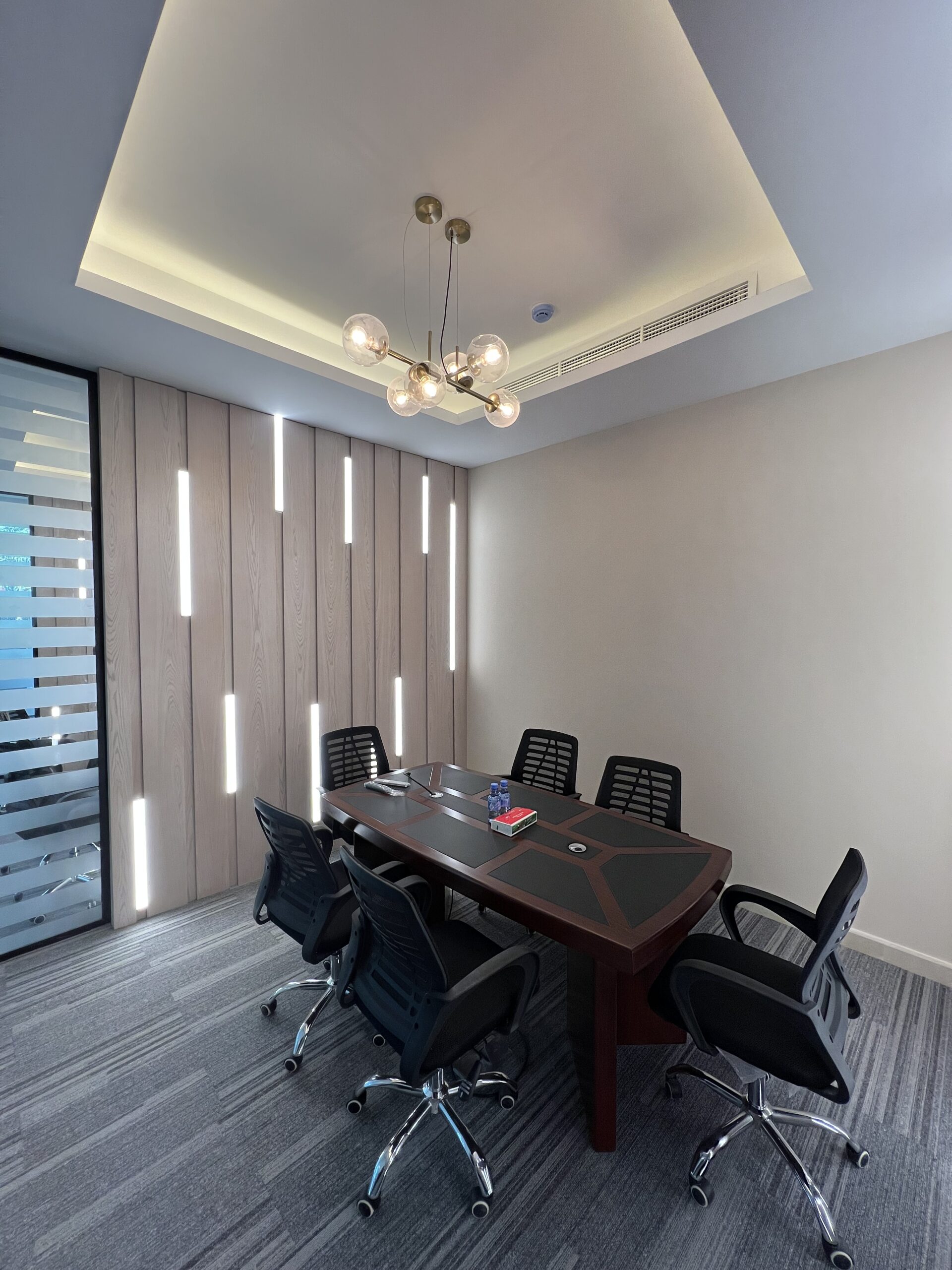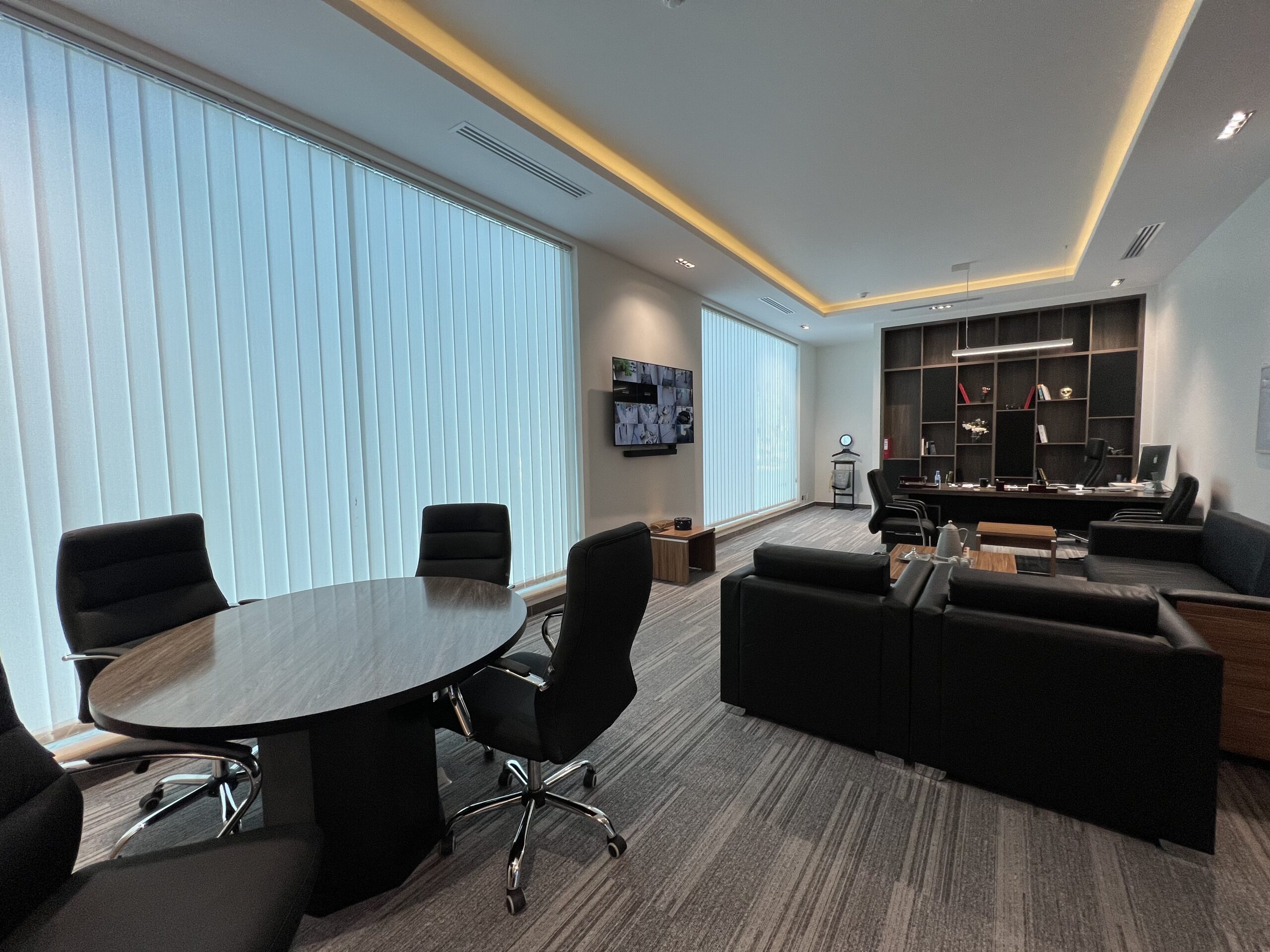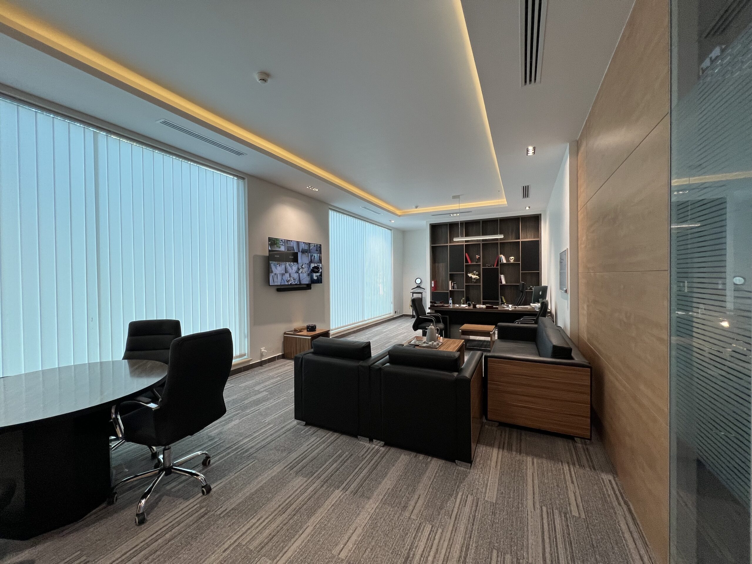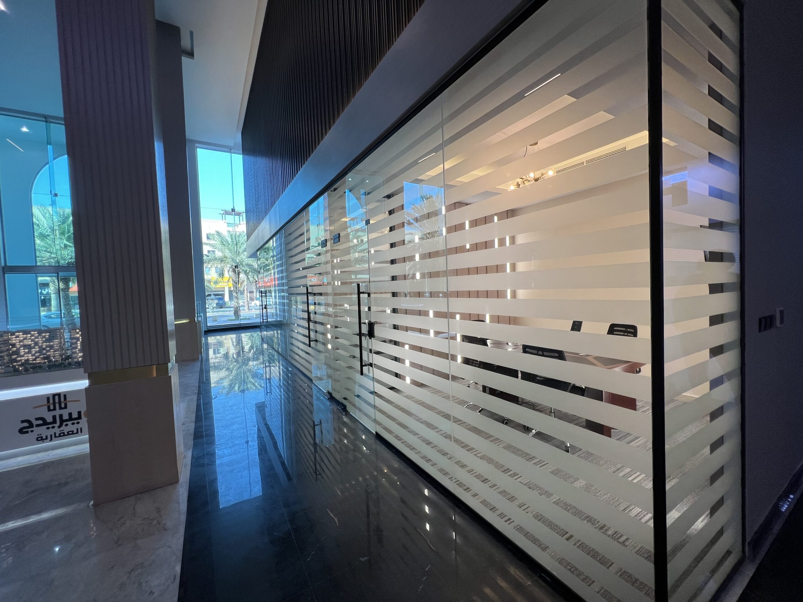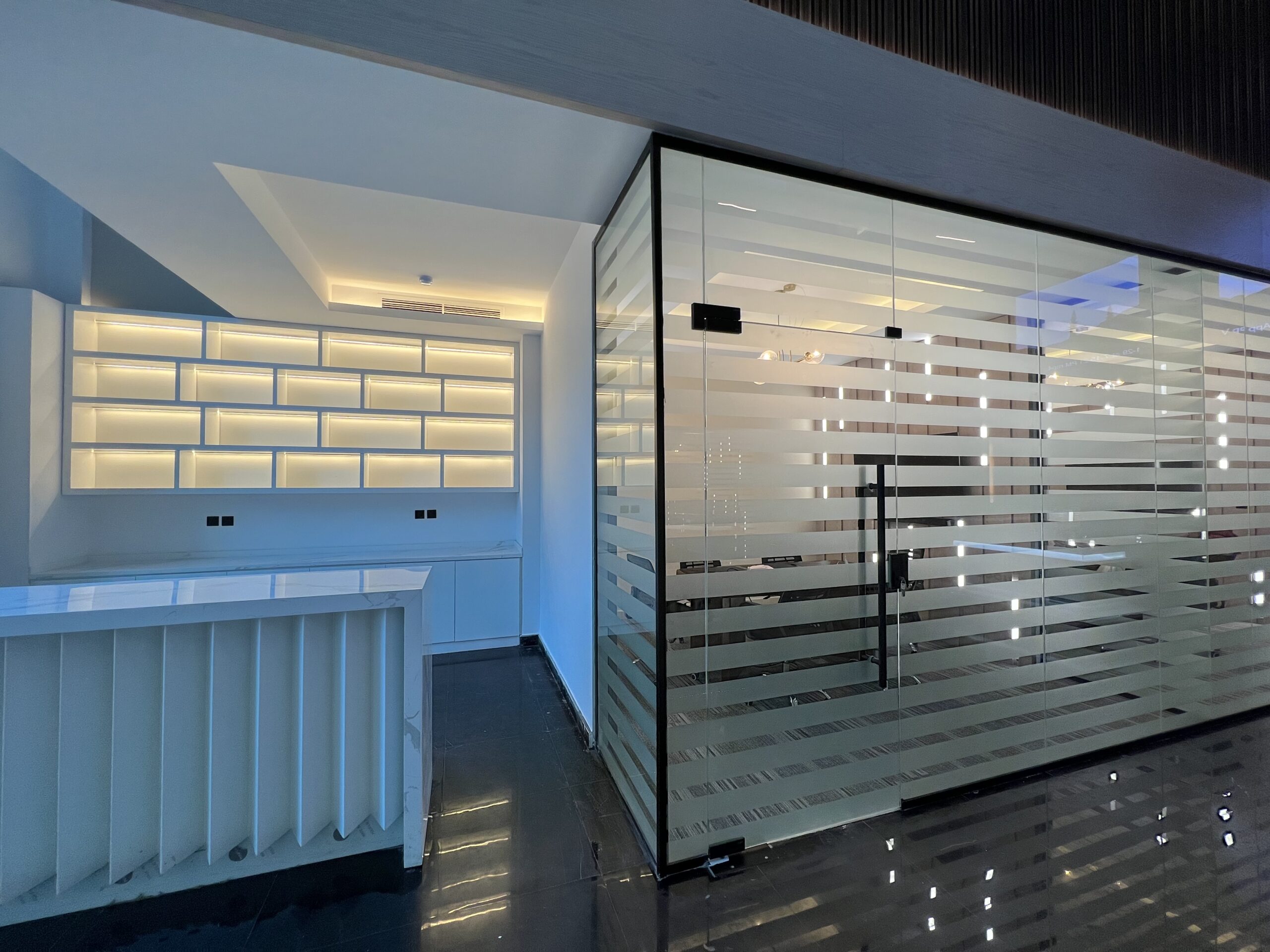 - تنفيذ القواطع الزجاجية للمكاتب، وتجهيز وفرش الأثاث المكتبي بما يعكس الهوية المؤسسية للشركة.