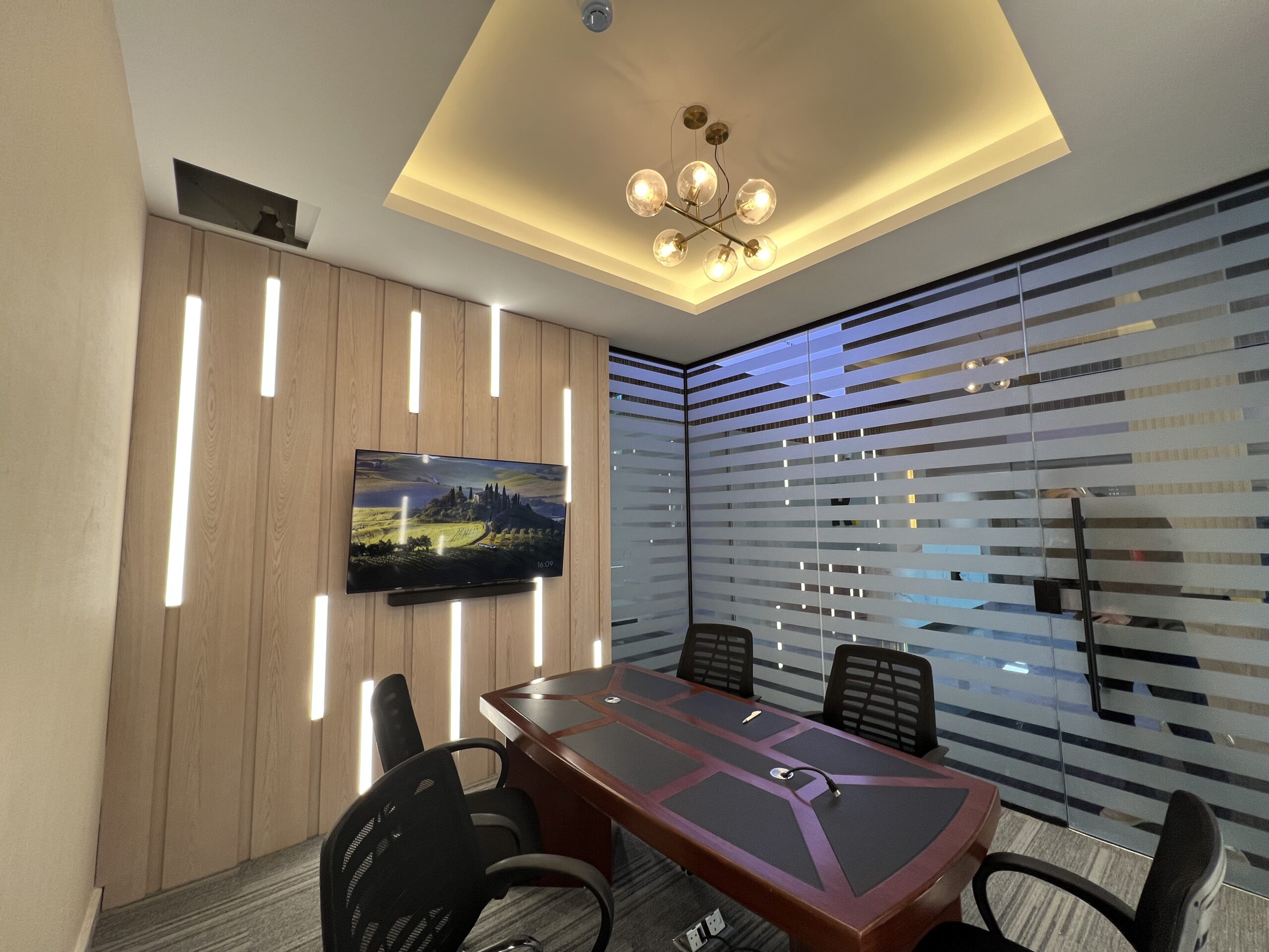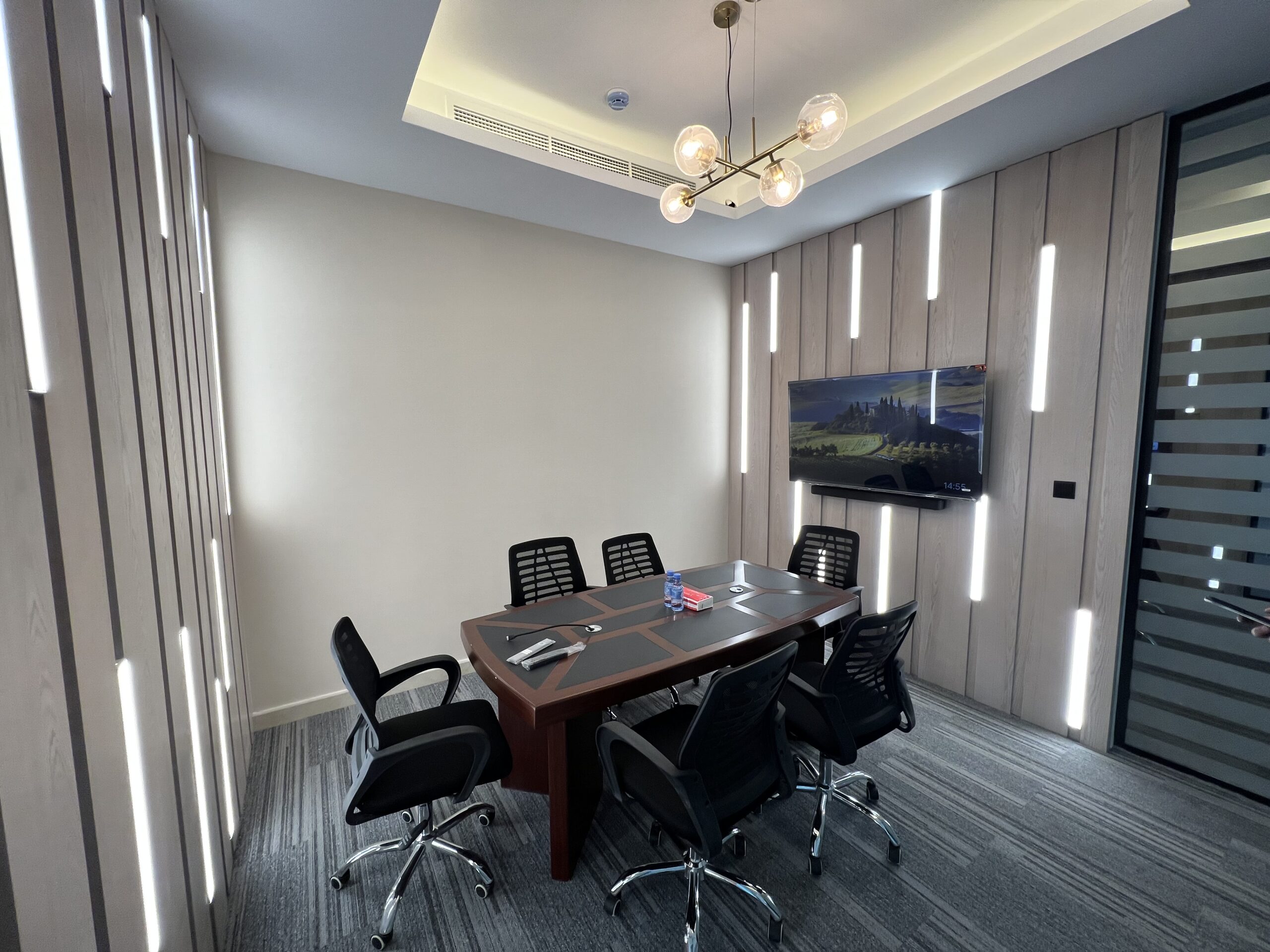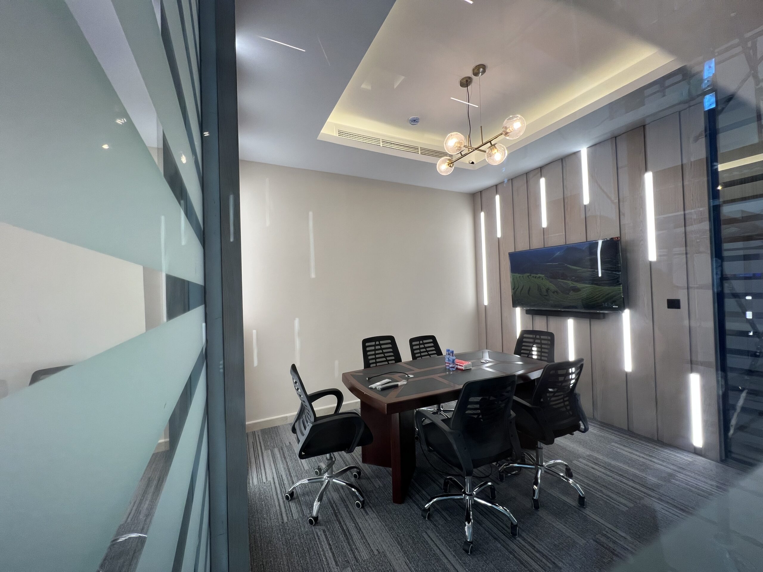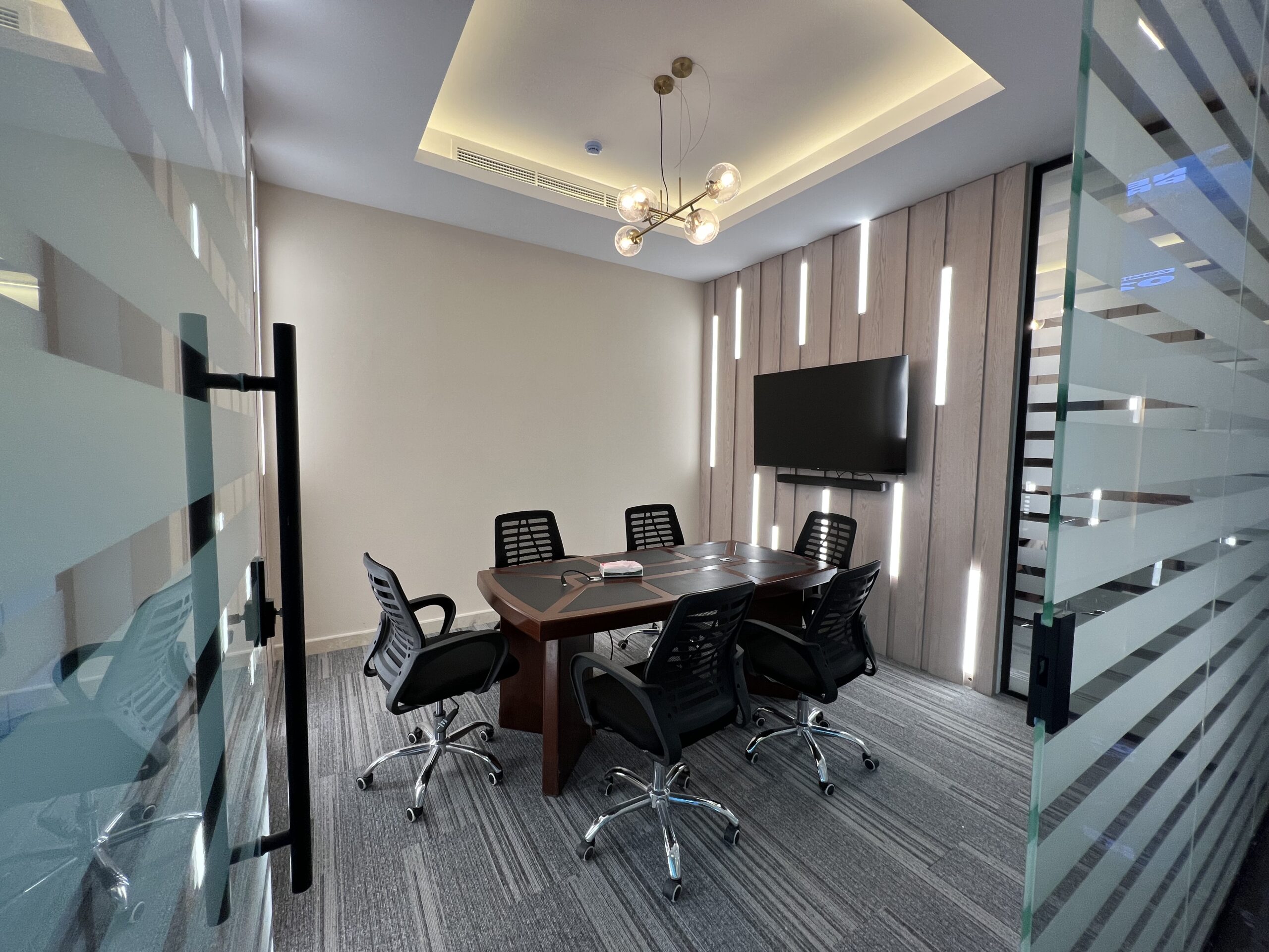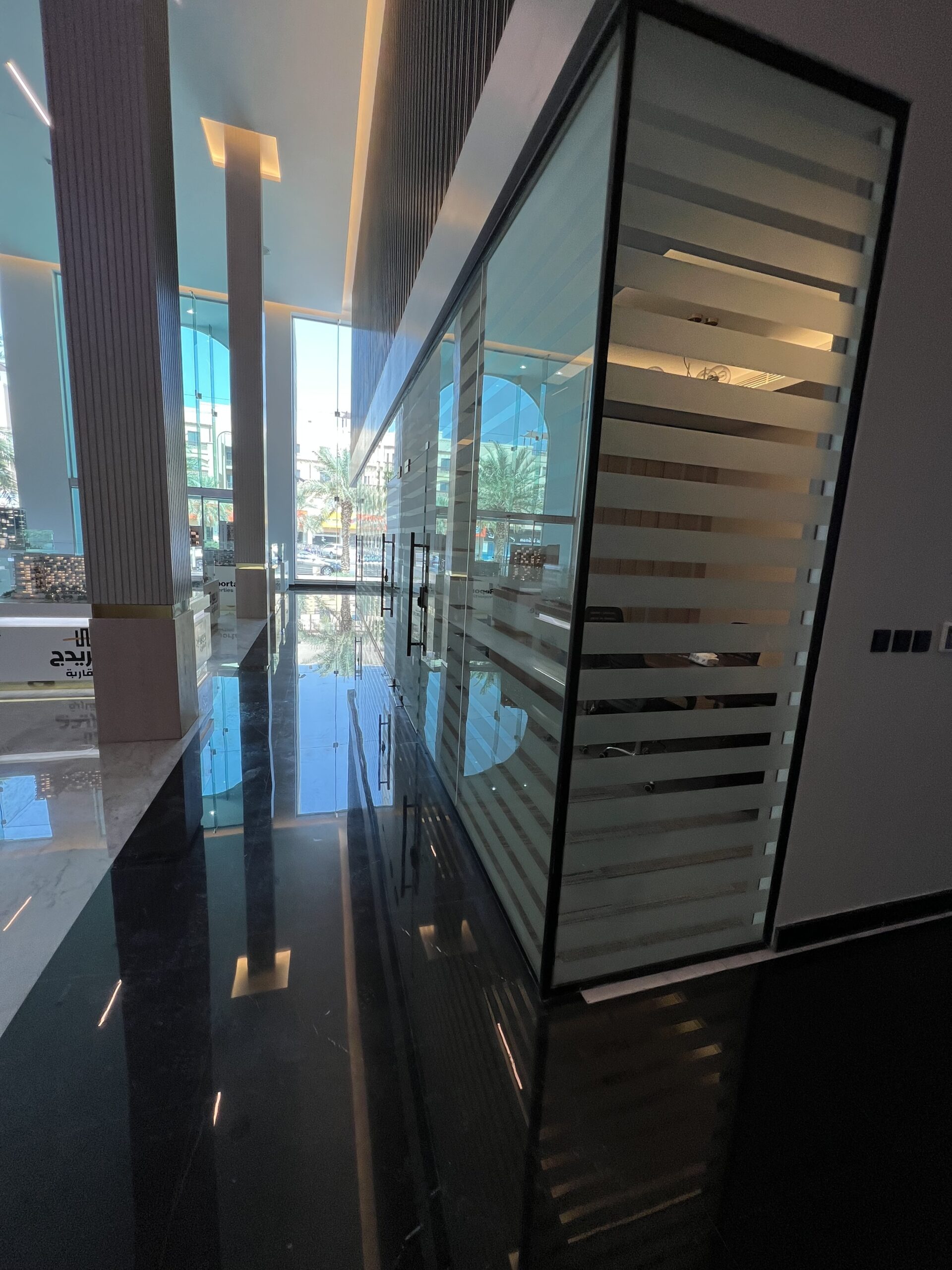 - تنفيذ القواطع الزجاجية للمكاتب، وتجهيز وفرش الأثاث المكتبي بما يعكس الهوية المؤسسية للشركة.