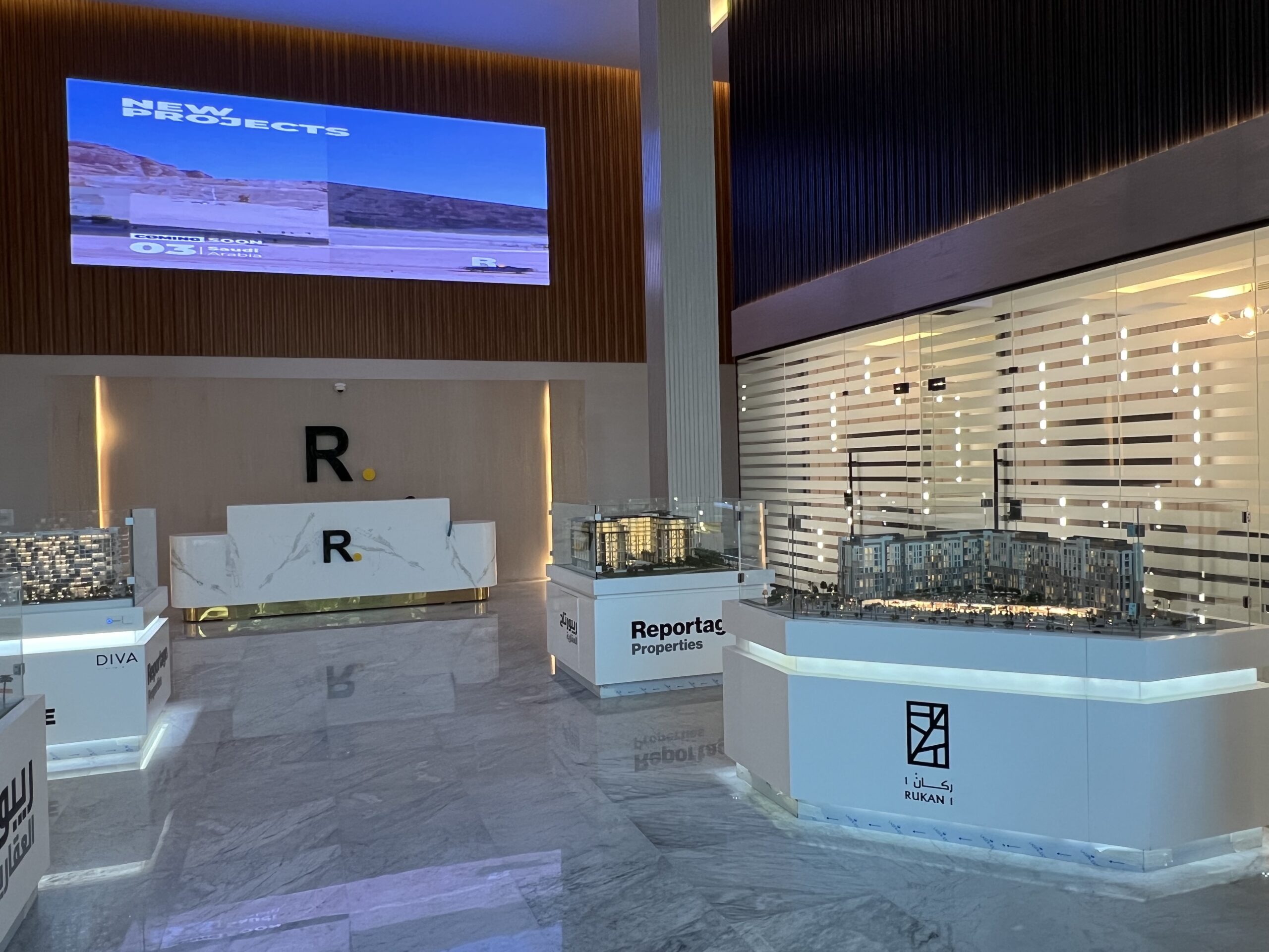 قامت الشركة بتنفيذ أعمال تجهيز المقر الإداري لصالح شركة ريبورتاج العقارية، إحدى كبرى شركات التسويق العقاري بالمملكة، بنظام تسليم مفتاح، وفق أعلى معايير الجودة والتشطيب.